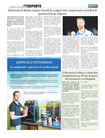 Israel ta entre 86 pais registra na e gymnastanan Israeli cu Musulman na Indonesia a ta for di e guera Israel-Hamas manidad y husticia,” segun
