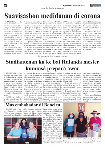 maksimalmente 25 persona di e espasio. No ta permití suavisashon ta konta tambe di febrüari 2022 laga nan di tèst na kas.