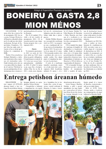di Boneiru e aña aki lo duna presupuesto 2021. Cft ta Entidat Públiko Boneiru momentu ku e promé kam- tamente.