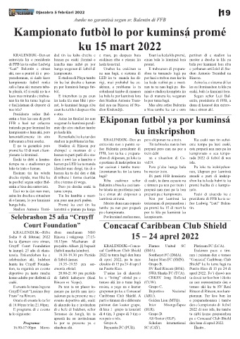 tensia. Enkonekshon ku e 18.30-19.30 pm Partido 2022 ta tuma lugá den luna Southeast FC (DMA). nan i paisnan den e torneo