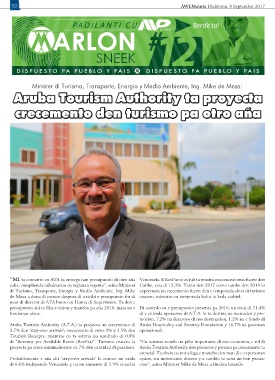 di Turismo, Transporte, Energia y Medio Ambiente, Ing. Mike experencia un crecemento fuerte den e temporada abou di turismo