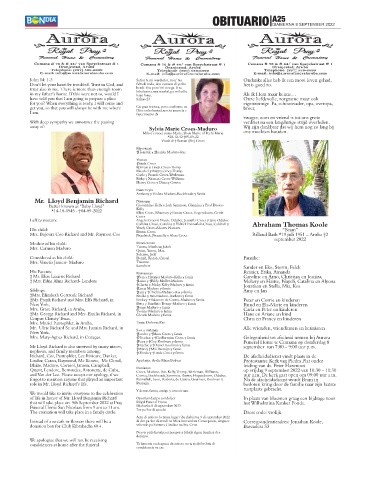 Funeral Home San Nicolaas from 9 am to 11 am. Diahuebs 8 di september 2022