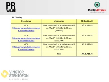 TV Clipping Infromation PR Cost in afl.