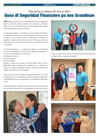 SVB Aruba a celebra 65 aña di Algemene Ouderdomsverzekering