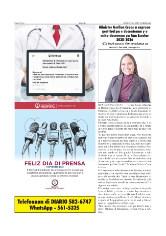 Telefonnan di DIARIO 582-6747 e ayudo di Logopedista, pero ora di wak e lista di