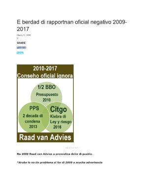 E berdad di rapportnan oficial negativo 2009- 2017 March 11, 2020 0 SHARE Facebook Twitter - Advertisement - Na 2009 Raad van Advies a pronostica dolor di pueblo *Aruba lo no tin problema si for di 2009 a scucha advertencia