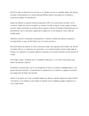 Na 2016 Raad van Advies ta ricibi e proyecto Citgo. Na augustus 2016 Raad van Advies