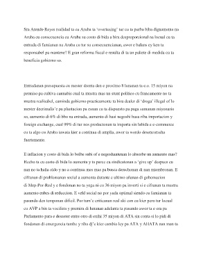 Aruba cu consecuencia cu Aruba su costo di bida a bira desproporcional na locual cu ta