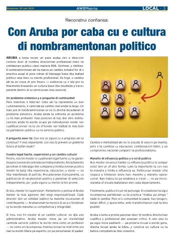 Di tres, nos tin mester di un cambio cultural, no djis uno Aruba a tuma e prome pasonan door di nombra directornan