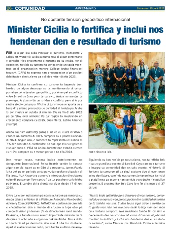 e oportunidad pa demostra kico mas Aruba tin di ofrece. di turismo”, asina Minister mr. Wendrick Cicilia a termina