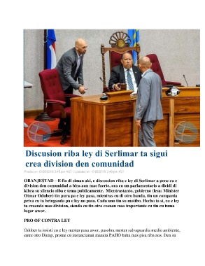 ORANJESTAD – E fin di siman aki, e discussion riba e ley di Serlimar a pone cu e