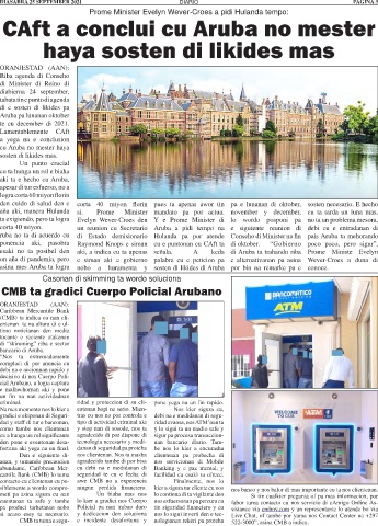 CMB ta tuma e segu- e incidente desafortuna y nologianan rekeri pa proteha 522-3000”, asina CMB a indica.