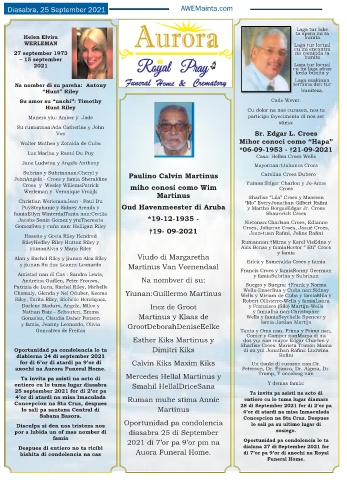 bishita di condolencia na cas Auora Funeral Home. di 7’or pa 9’or di anochi na Royal