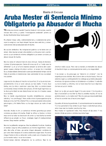 Aworaki, Aruba no tin un sentencia minimo garantisa pa esnan Nos mester di legislacion nobo. Nos mester di dje awor. Y nos
