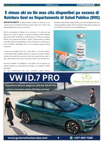 cita pa vacuna di Keintura Geel pa e siman aki ta yen. No tin mas volksgezondheid_aruba, subi nos website www.dvg.aw, yama nos