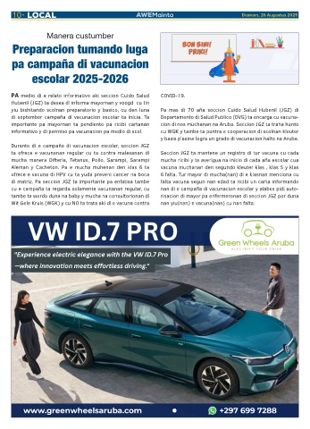 cu e campaña ta regarda solamente vacunanan regular, cu nan di e campaña di vacunacion escolar y alabes pidi auto-