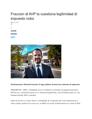 ORANJESTAD (AAN): E belasting nobo cu Gobierno a introduci pa paga proyectonan