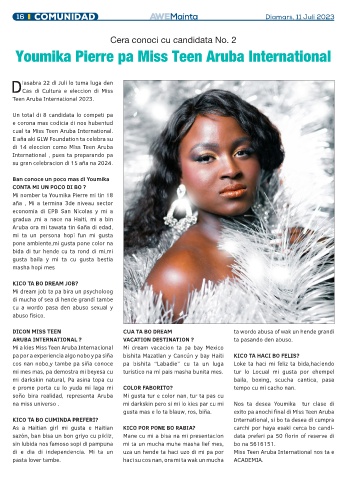 Mi a kies Miss Teen Aruba Internacional Mi dream vacacion ta pa bay Mexico