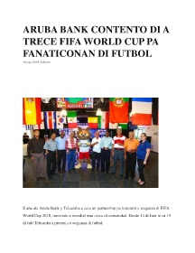 E aña aki Aruba Bank y Telearuba a cera un partnership pa transmiti e weganan di FIFA