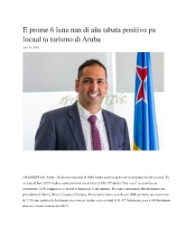 ORANJESTAD, Aruba – E prome 6 lunanan di 2018 tabata positivo pa locual ta trata turismo di nos pais. Te