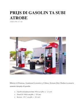 Gasolin unleaded-premium:195,5 cen p/ltr. (+ 2,3 cen)