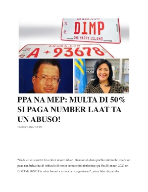 paga nan belasting di vehiculo di motor (motorrijtuigbelasting) pa fin di januari 2020 un