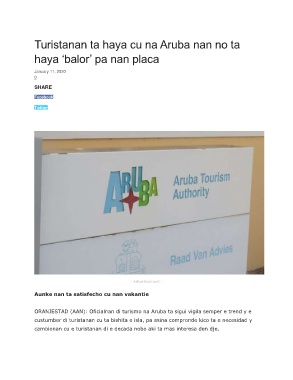 Turistanan ta haya cu na Aruba nan no ta