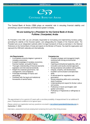 We are looking for a President for the Central Bank of Aruba