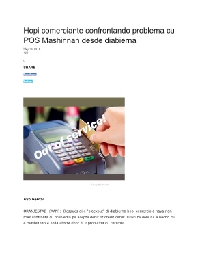 mes confronta cu problema pa acepta debit of credit cards. Esaki ta debi na e hecho cu
