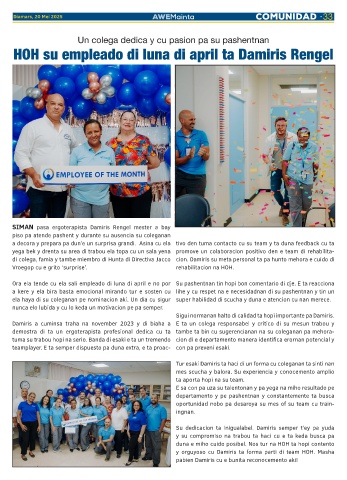 Damiris a cuminsa traha na november 2023 y di biaha a E ta un colega responsabel y critico di su mesun trabou y