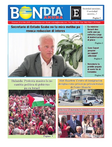 Diamars 20 di Mei 2025 www.bondia.com Email: noticia@bondia.com Tel: 582-7800 Fax: 582-7044 1,75 Florin