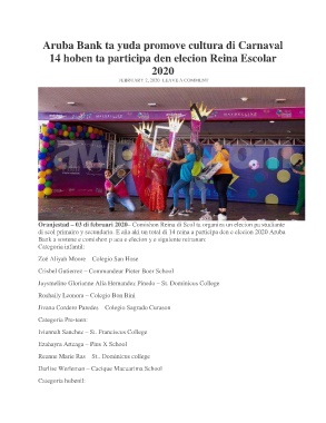 di scol primairo y secundario. E aña aki un total di 14 reina a participa den e elecion 2020 Aruba