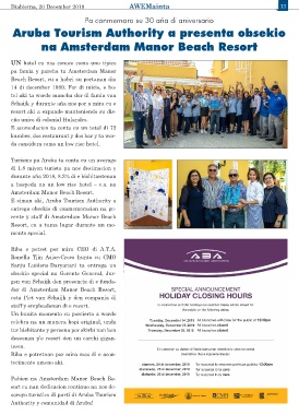 tecimento ameno aki. diamars, 24 di december, 2019 Tur sucursal lo cera nan porta pa publico 12:00pm