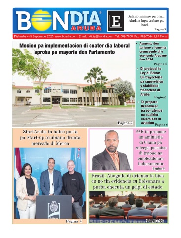 Diahuebs 4 di September 2025 www.bondia.com Email: noticia@bondia.com Tel: 582-7800 Fax: 582-7044 1,75 Florin