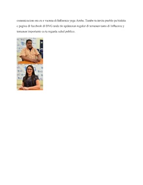 comunicacion ora cu e vacuna di Influenza yega Aruba. Tambe ta invita pueblo pa bishita e pagina di facebook di DVG unda tin updatenan regular di temanan tanto di Influenza y temanan importante cu ta regarda salud publico.