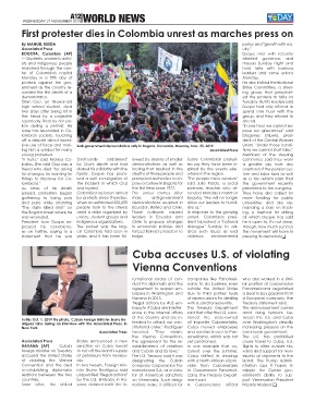 First protester dies in Colombia unrest as marches press on