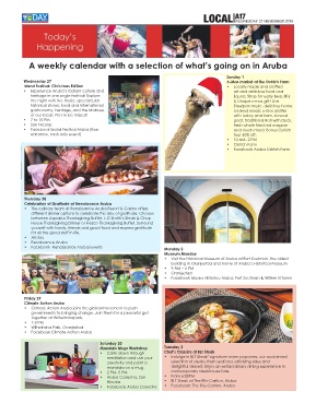 A weekly calendar with a selection of what’s going on in Aruba