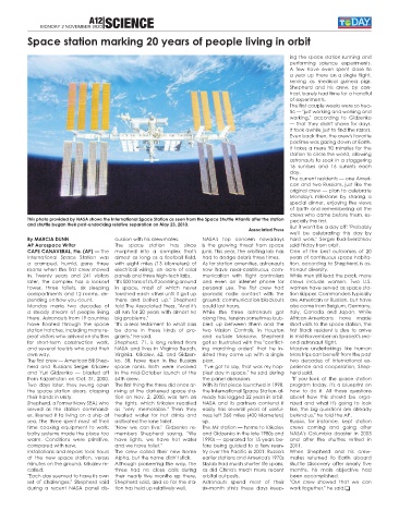 set of challenges," Shepherd said Shepherd said, and so far the sta- Astronauts spend most of their "Our crew showed that we can