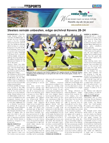 Steelers remain unbeaten, edge archrival Ravens 28-24