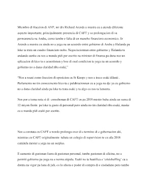 permanencia na Aruba, como tambe e falta di un maneho financiero-economico. Sr