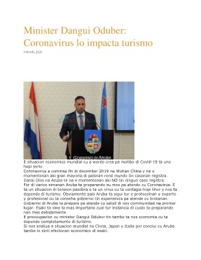 depende di turismo. Obviamente pais Aruba ta sigui tur e protocolnan y experto