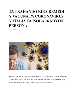 mundo ta den un careda pa busca remedi y/of vacuna pa coronavirus.