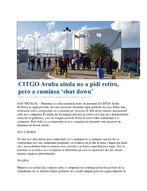 SAN NICOLAS – Mientras cu e discussion di retiro di personal di CITGO Aruba