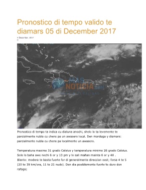 Pronostico di tempo ta indica cu dialuna anochi, shelo lo ta levemente te