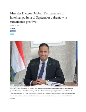 “Hotel Performance” pa e luna di September 2019. Cu hopi satisfaccion por mira e resultadonan cu a drenta y