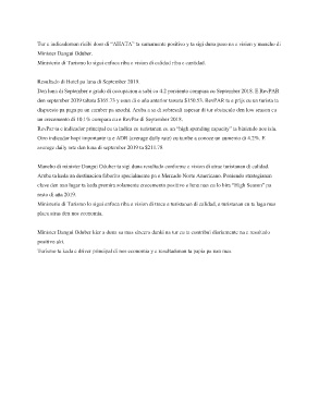 den september 2019 tabata $165.73 y esun di e aña anterior tawata $150.53. RevPAR ta e prijs cu un turista ta