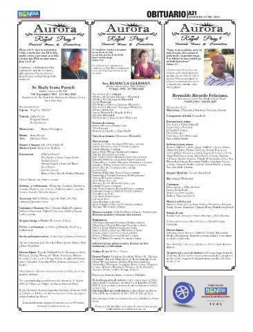 Tin oportunidad pa condolencia riba diarazon, 21 di mei Ta invita pa acto di entiero cual lo tuma lugar na Misa