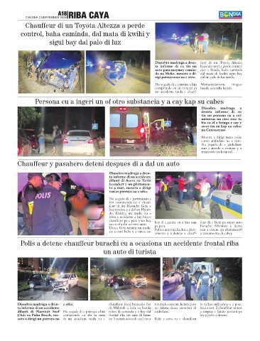 Diasabra madruga a dren- e sitio. chauffeur local biniendo for resulta levemente herida pero lo ta bao influencia y a pone