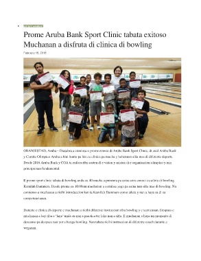 E prome sport clinic tabata di bowling unda cu 40 mucha a presenta pa asina cera conoci cu atleta di bowling
