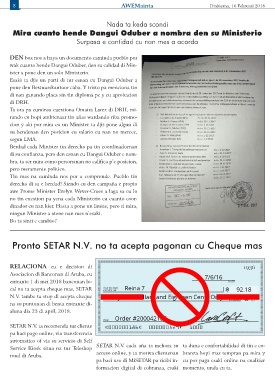 Pronto SETAR N.V. no ta acepta pagonan cu Cheque mas